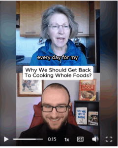 “I’m enjoying being in my pretty-well-organized kitchen listening to this video, cooking beans and tomatoes in my cast-iron skillet!” What a lovely picture Mary, especially with the onset of winter!