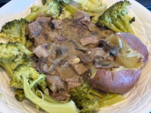 The first night I added cooked cubed lamb (or use beef steak) and served with a baked potato and broccoli.